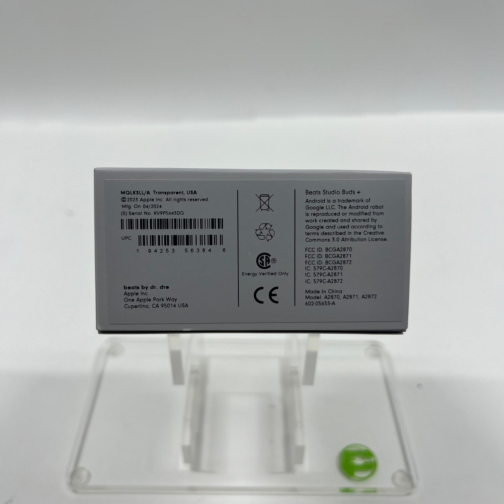 New Beats Studio Buds+ Wireless In-Ear Bluetooth Headphones Transparent MQLK3LL/A